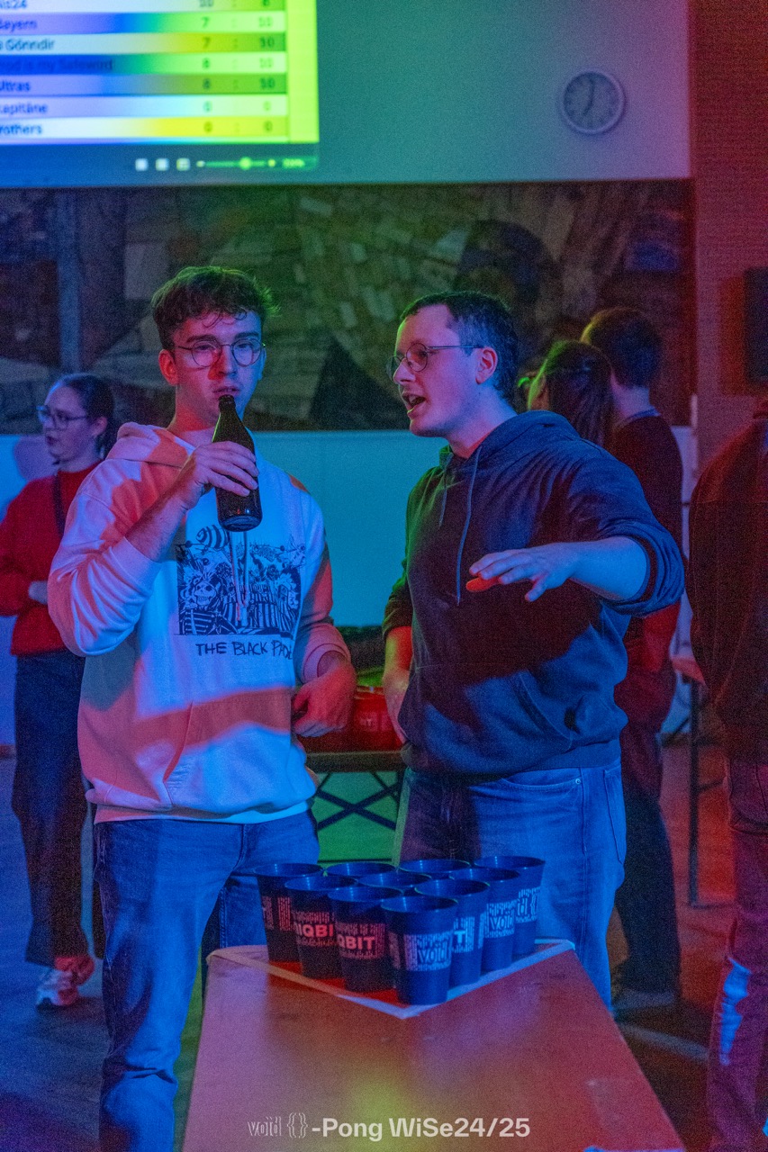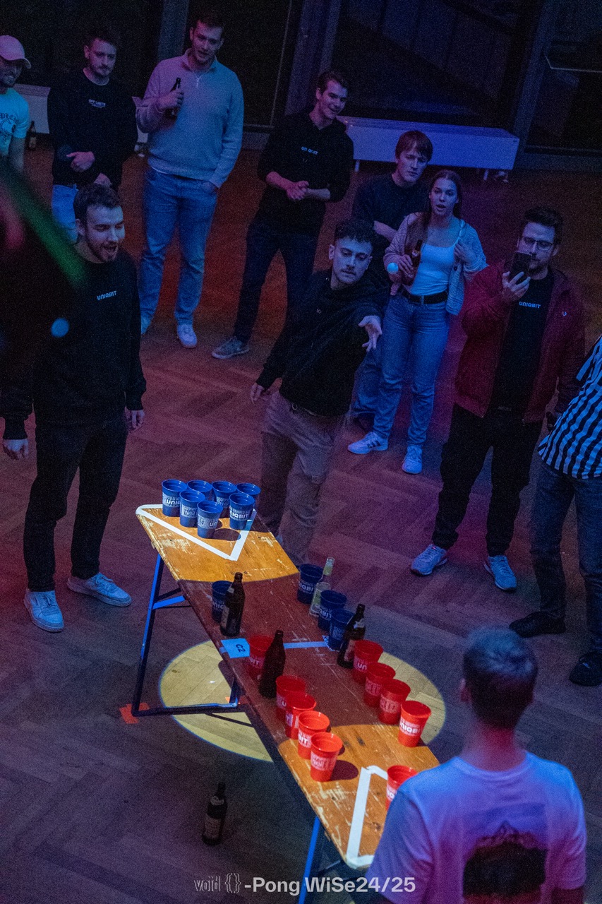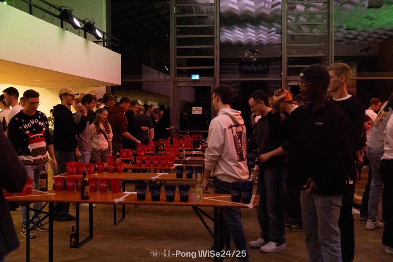 Dieses Mal haben wir nochmal alles gegeben und unser legendäres Void-Pong-Turnier im Wintersemester 2024/2025 veranstaltet. Mit neuen Fachschaftsmitgliedern und den alten Hasen haben wir uns wieder zusammengefunden und hatten einen super Abend.